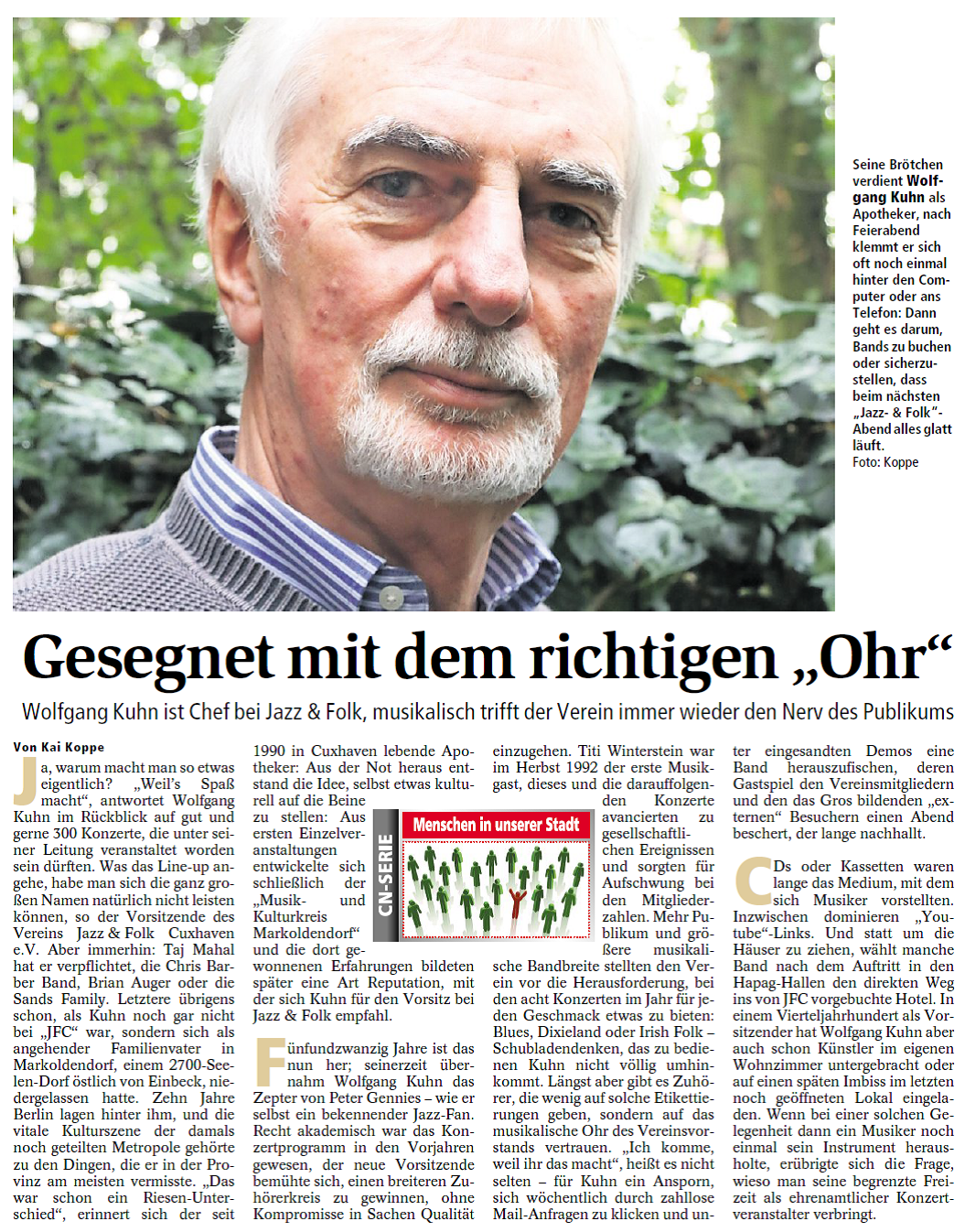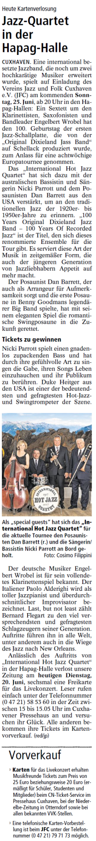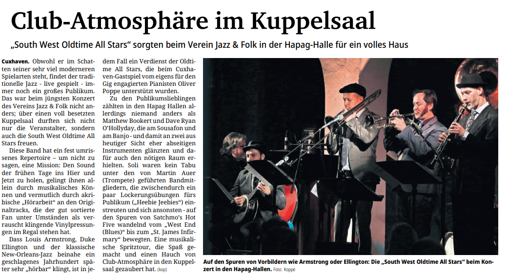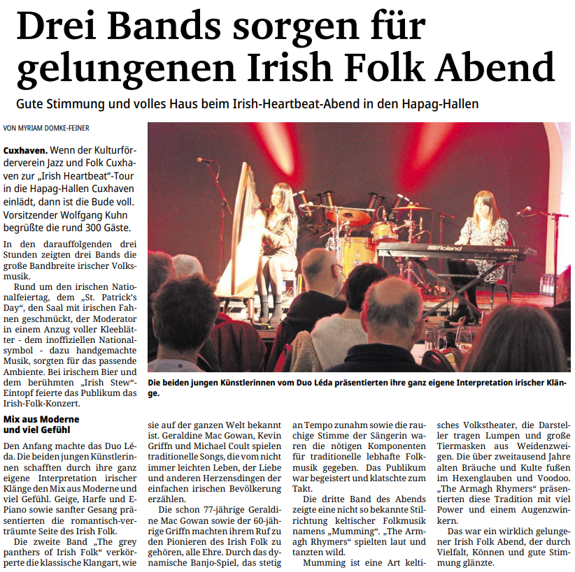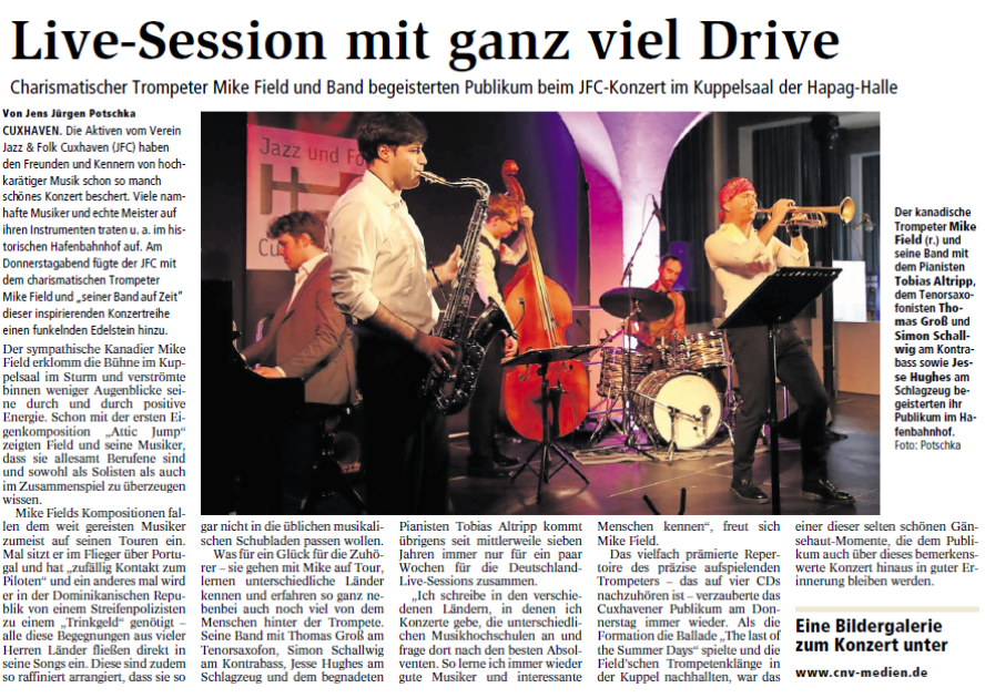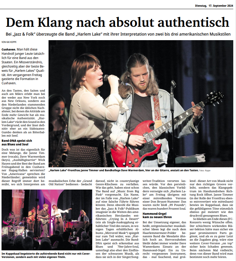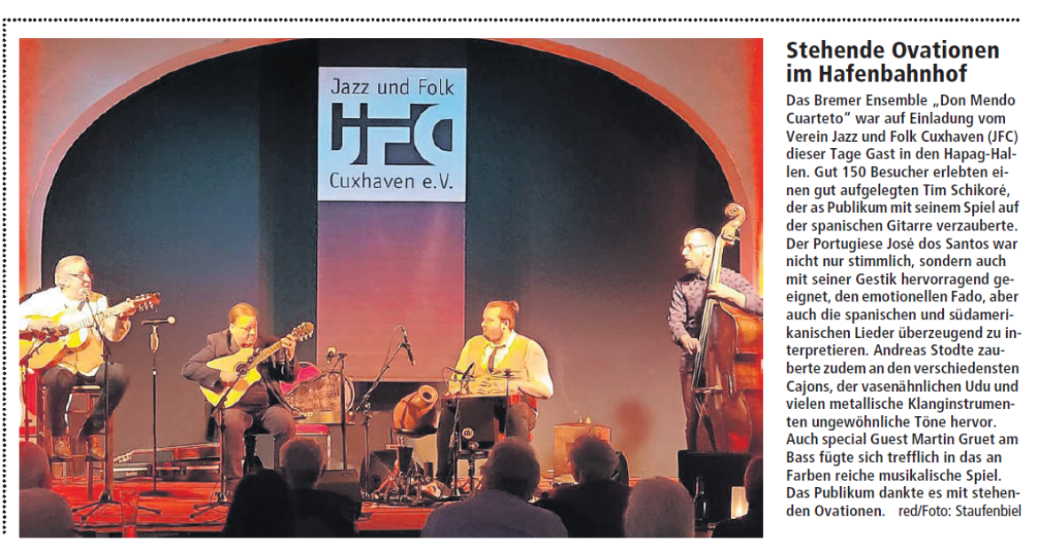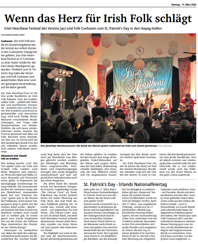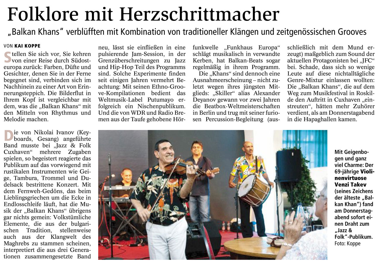 Mit freundlicher Genehmigung der Cuxhaven-Niederelbe Verlagsgesellschaft mbH & Co. KG., vertreten durch Herrn Güler, dürfen wir die nachfolgenden Presseartikel veröffentlichen. Wir bedanken uns für die langjährige Unterstützung! Eintrittskarten für unsere Konzerte erhalten Sie beim Ticket-Service der Cuxhavener Nachrichten (Kaemmererplatz 2, 27472 Cuxhaven). Quellenangabe und Backlink: www.cn-online.de. Alle Rechte auf Fotos und Texte verbleiben beim Urheber bzw. bei dem jeweiligen Rechteinhaber.