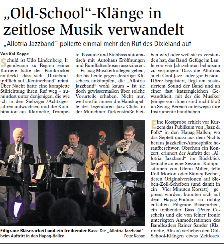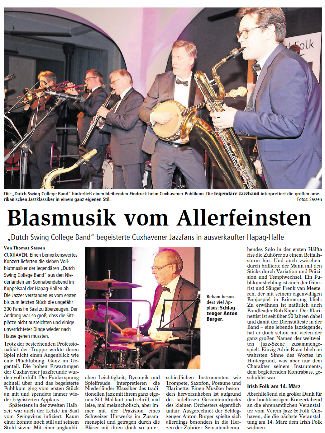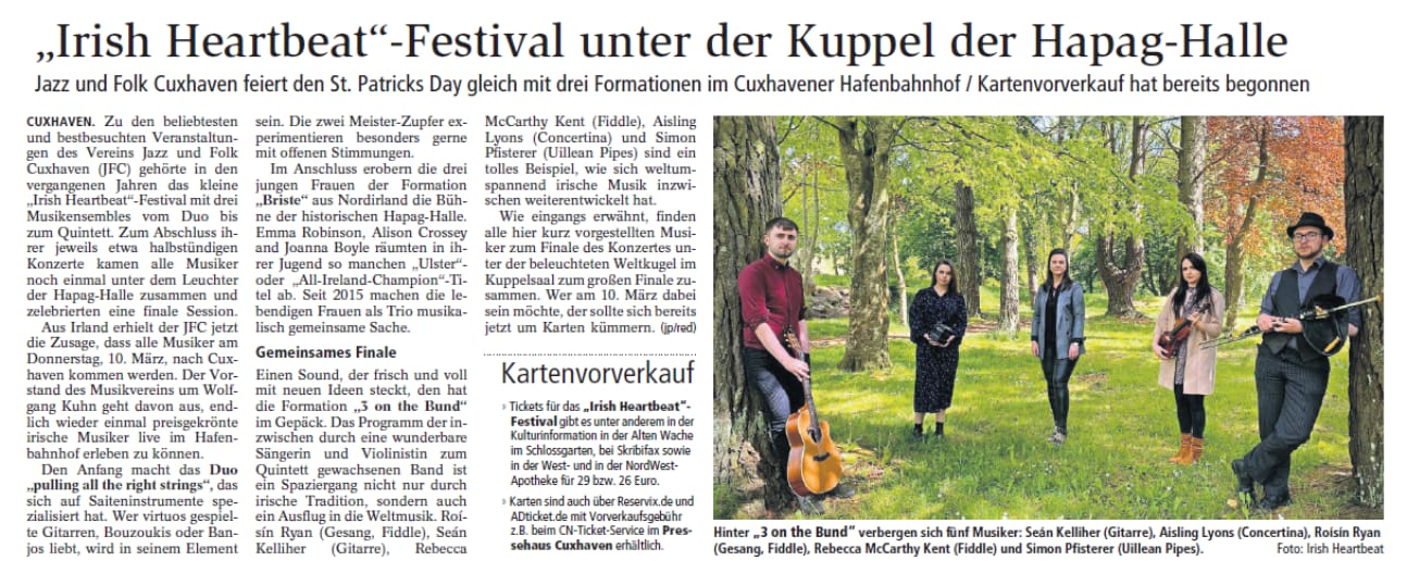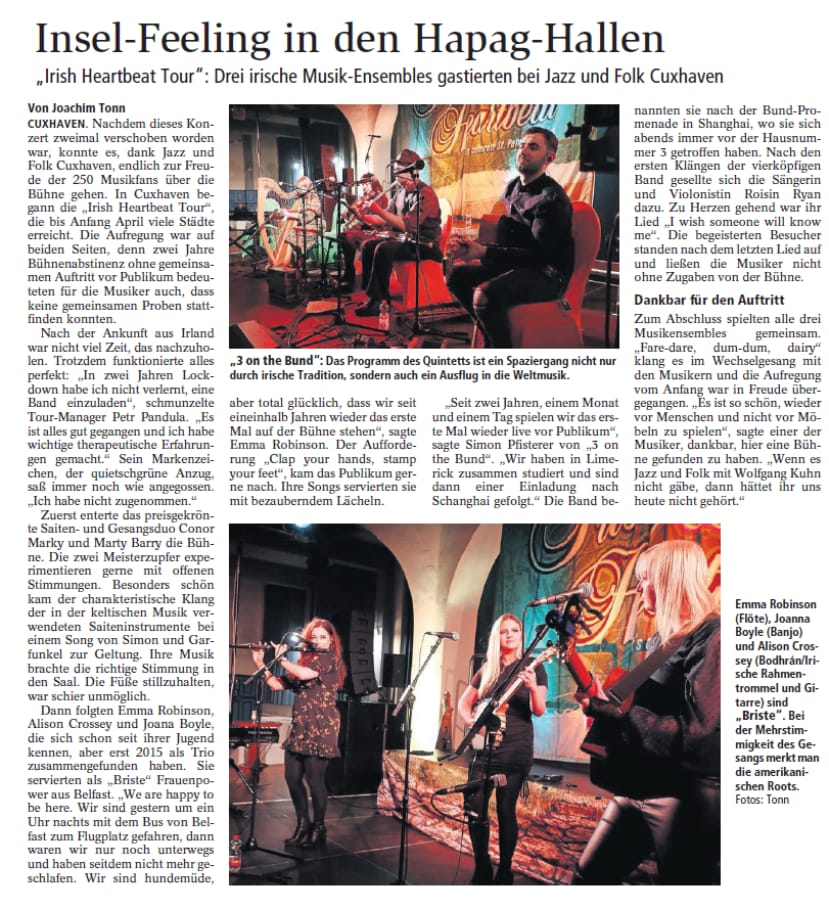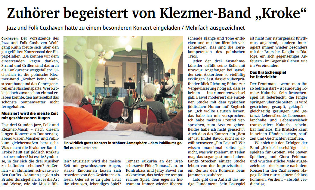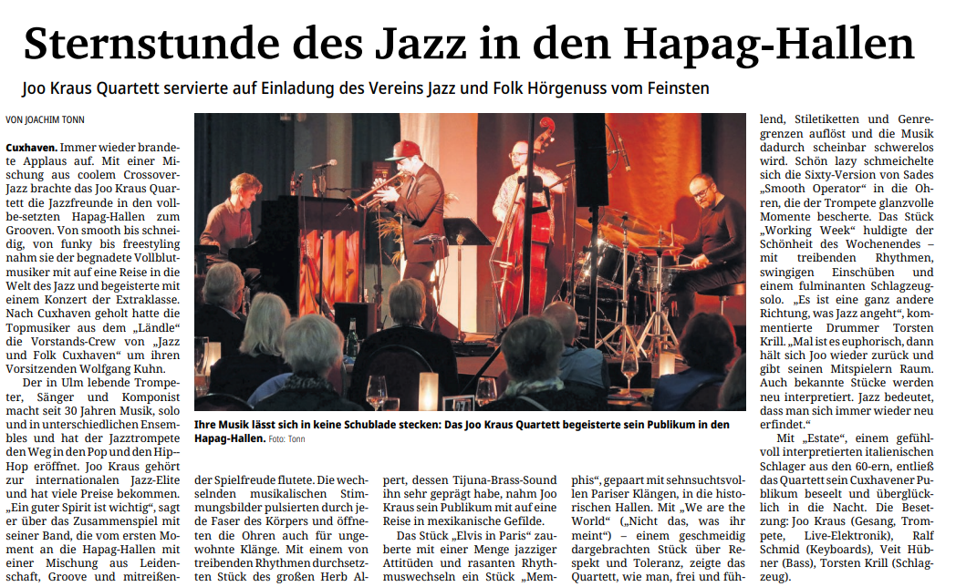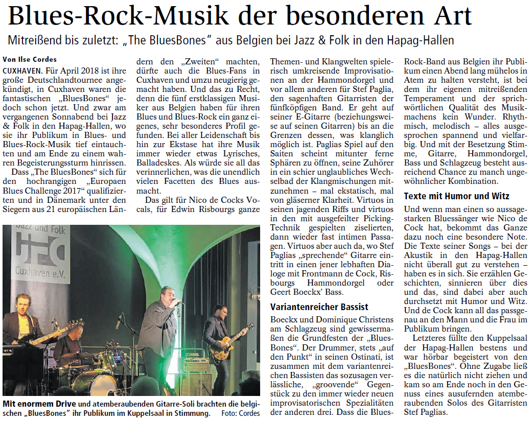 Mit freundlicher Genehmigung der Cuxhaven-Niederelbe Verlagsgesellschaft mbH & Co. KG., vertreten durch Herrn Güler, dürfen wir die nachfolgenden Presseartikel veröffentlichen. Wir bedanken uns für die langjährige Unterstützung! Eintrittskarten für unsere Konzerte erhalten Sie beim Ticket-Service der Cuxhavener Nachrichten (Kaemmererplatz 2, 27472 Cuxhaven). Quellenangabe und Backlink: www.cn-online.de. Alle Rechte auf Fotos und Texte verbleiben beim Urheber bzw. bei dem jeweiligen Rechteinhaber.