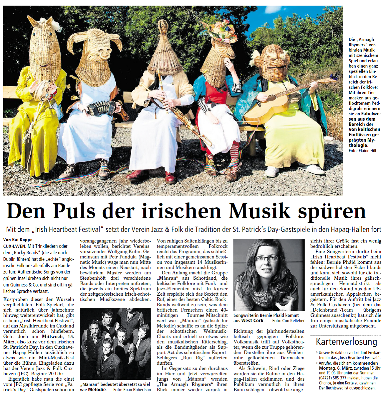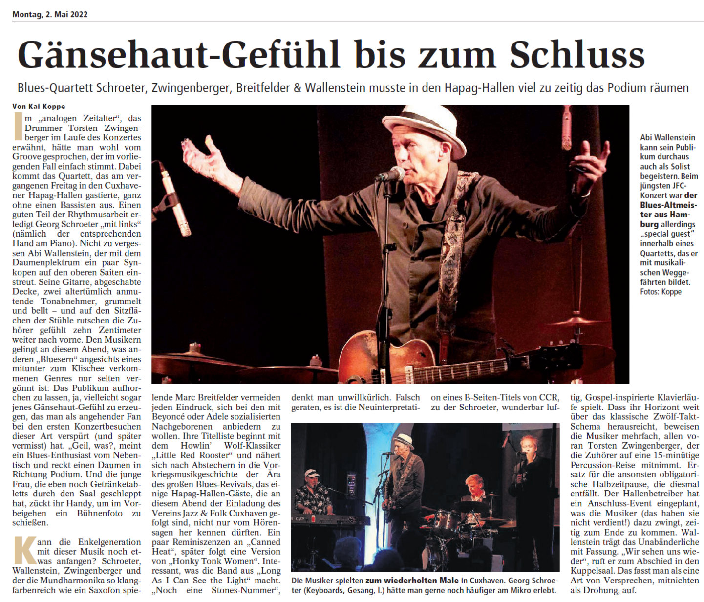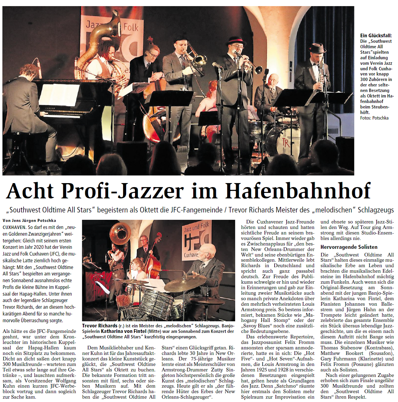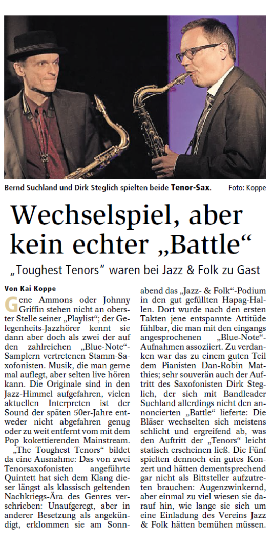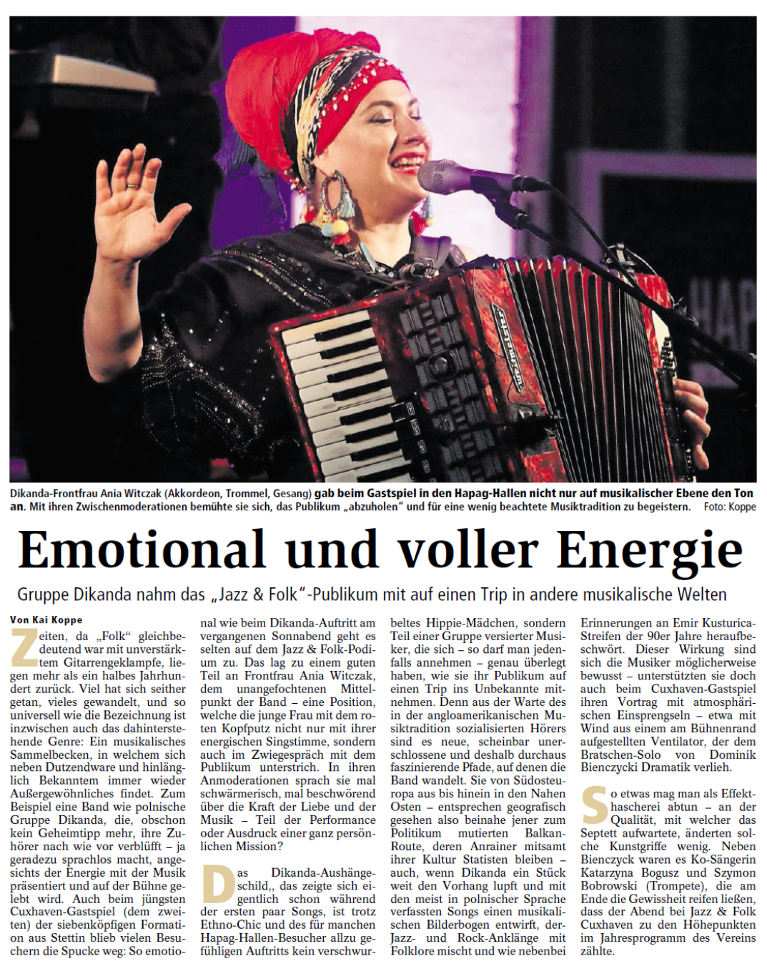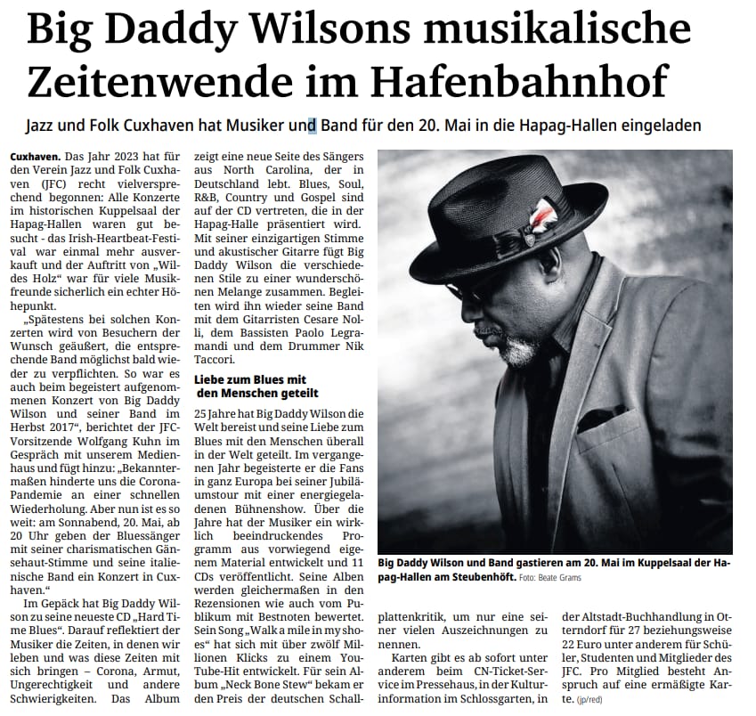 Mit freundlicher Genehmigung der Cuxhaven-Niederelbe Verlagsgesellschaft mbH & Co. KG., vertreten durch Herrn Güler, dürfen wir die nachfolgenden Presseartikel veröffentlichen. Wir bedanken uns für die langjährige Unterstützung! Eintrittskarten für unsere Konzerte erhalten Sie beim Ticket-Service der Cuxhavener Nachrichten (Kaemmererplatz 2, 27472 Cuxhaven). Quellenangabe und Backlink: www.cn-online.de. Alle Rechte auf Fotos und Texte verbleiben beim Urheber bzw. bei dem jeweiligen Rechteinhaber.